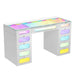 The integrated LED light strips on the desktop and inside the drawers bring a touch of modern luxury, while customizable RGB lighting and rainbow mode let you set the perfect mood—whether you're prepping for the day or a night out.