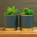 • This potted succulent plant features a stylish teal pot and assorted varieties