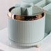 Efficiently store and access your cosmetics with the rotating organiser in duck egg color. this compact unit spins 360 degrees, featuring multiple compartments for easy organization of makeup, skincare products, brushes, and more. perfect for saving space on countertops while adding elegance to your vanity or dressing area.