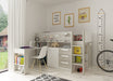 Pull-out desk beneath the lofted bed — great for homework or creative time