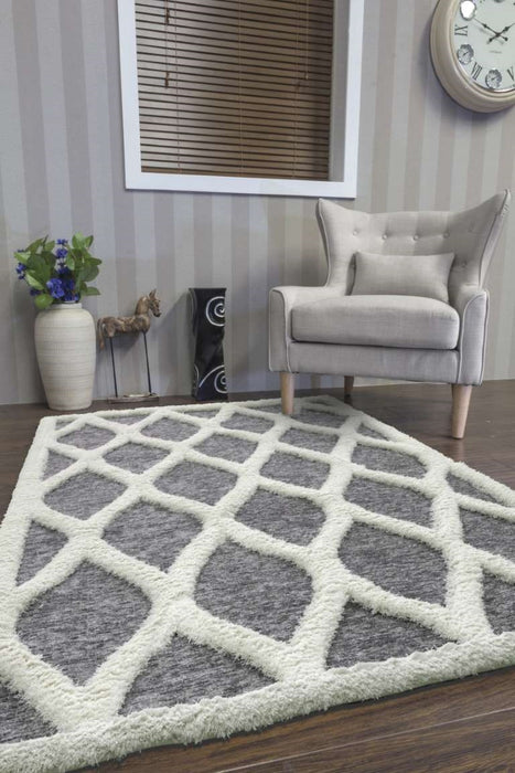 Finesse Tear Drop - High-Low Shaggy - Grey / Cream