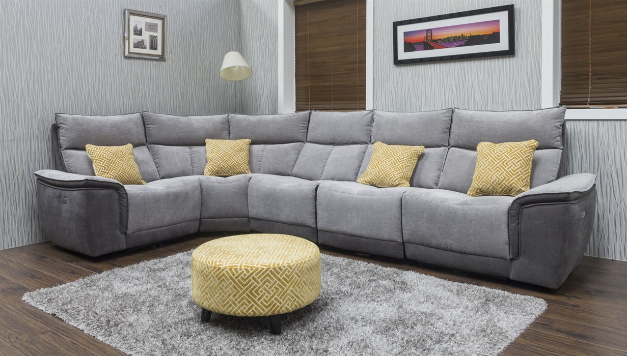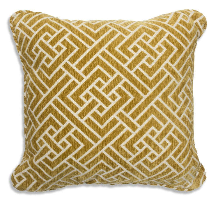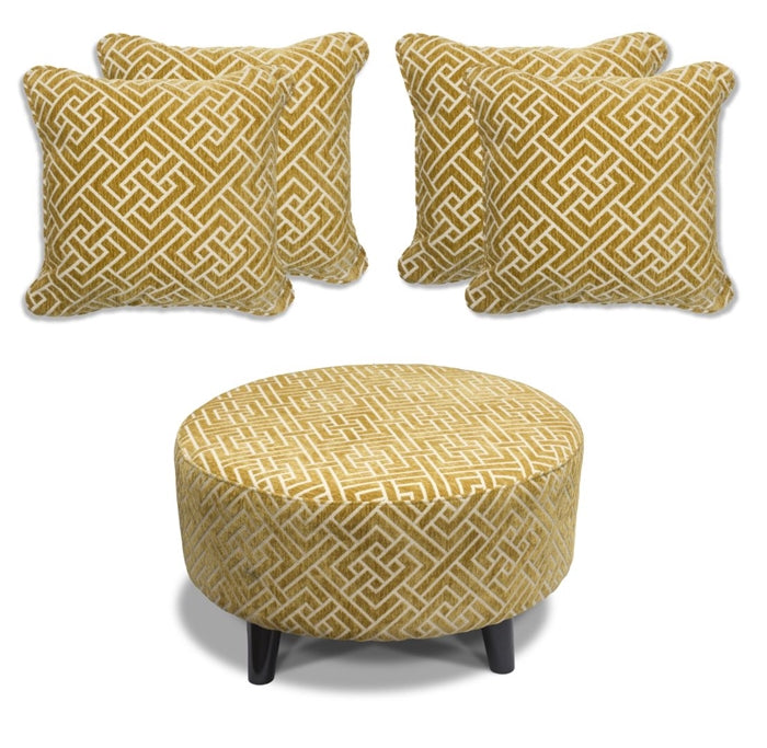 Flair ochre & cream footstool set with 4 filled cushions and removable zipped cover. Chenille fabric.