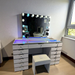 Professional lighting meets luxury design: 15-bulb mirror + RGB-lit desk bring true glamour to your space.