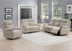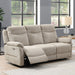 Elevate your living room style with the Keegan, a soft fabric motion sofa that will take lounging to the next level ! The chrome finish button functions on the side combined with the extra padded headrest and arms makes comfort effortless and exceptional support while relaxing.