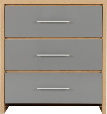 Seville 3 Drawer Chest Grey High Gloss/Light Oak Effect Veneer